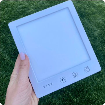 Moodozi is a light therapy lamp designed to mimic natural sunlight, helping alleviate symptoms of Seasonal Affective Disorder (SAD) and improve mood and energy levels.